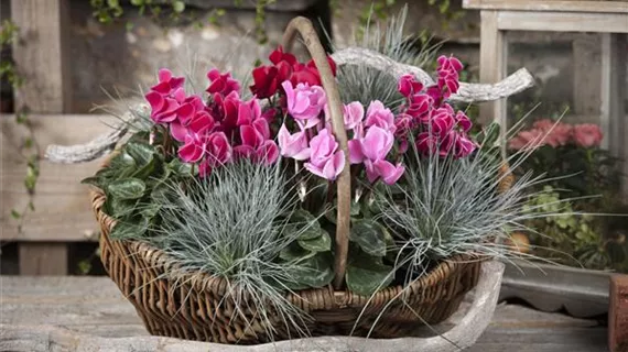 Alpenveilchen machen nicht nur als Zimmer- und Freilandpflanzen eine gute Figur. Manche Sorten eignen sich auch gut als Schnittblumen. Sind die Bedingungen optimal, können sie rund zwei bis vier Wochen in der Vase halten, dazu sollten die Enden der Blütenstiele eingeritzt werden.