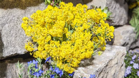Alpine Pflanzen und Kräuter krönen den Steingarten