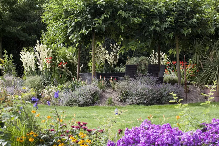 All diese Pflanzen unterschiedlicher Kategorien treffen in so genannten mixed borders zusammen, so nennt man jene Beete und Rabatten, die aus Ein- und Zweijährigen, Zwiebelgewächsen, Stauden und Gehölzen bestehen und die Essenz des Cottage Gartens verkörpern.