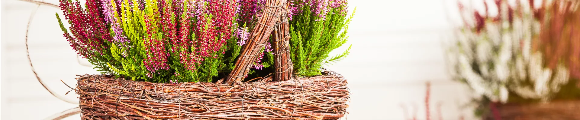 Den Herbst mit Heide und Chrysanthemen auf den Balkon holen